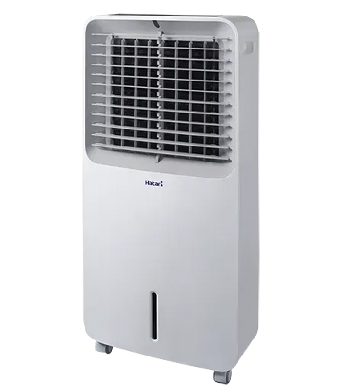 - Quạt hơi nước Hatari hoạt động theo nguyên lý bay hơi trực tiếp. Máy bơm hoạt động, hút đẩy nước tuần hoàn từ trên xuống dưới tấm làm mát để giữ tấm làm mát luôn luôn ướt, luồng khí nóng khi đi qua sẽ được hạ nhiệt nhanh chóng.
